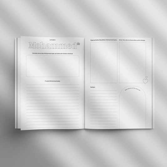 Der heilige Koran ist ein zentraler Bestandteil des Islam. Dieses Koran-Journal ermutigt dich nicht nur dazu, dich intensiver mit dem Koran auseinanderzusetzen, sondern unterstützt dich auch mit verschiedenen Aufgaben, Suren-Tracker oder die 30 Juz, um die Inhalte besser zu verstehen und zu vertiefen.