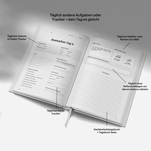 Jetzt mit ganz neuem Cover Design und in zwei verschiedenen Farben! ✨ Mit tiefgehenden Inhalten und einer positiven Prüfung durch einen Imam ist unser Planer mehr als nur ein Wegweiser – er ist dein moderner, sicherer Begleiter für das Beste in diesem besonderen Monat.