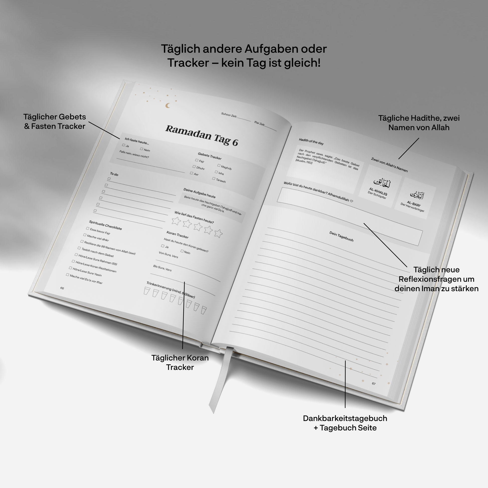 Jetzt mit ganz neuem Cover Design und in zwei verschiedenen Farben! Mit tiefgehenden Inhalten und einer positiven Prüfung durch einen Imam ist unser Planer mehr als nur ein Wegweiser – er ist dein moderner, sicherer Begleiter für das Beste in diesem besonderen Monat.